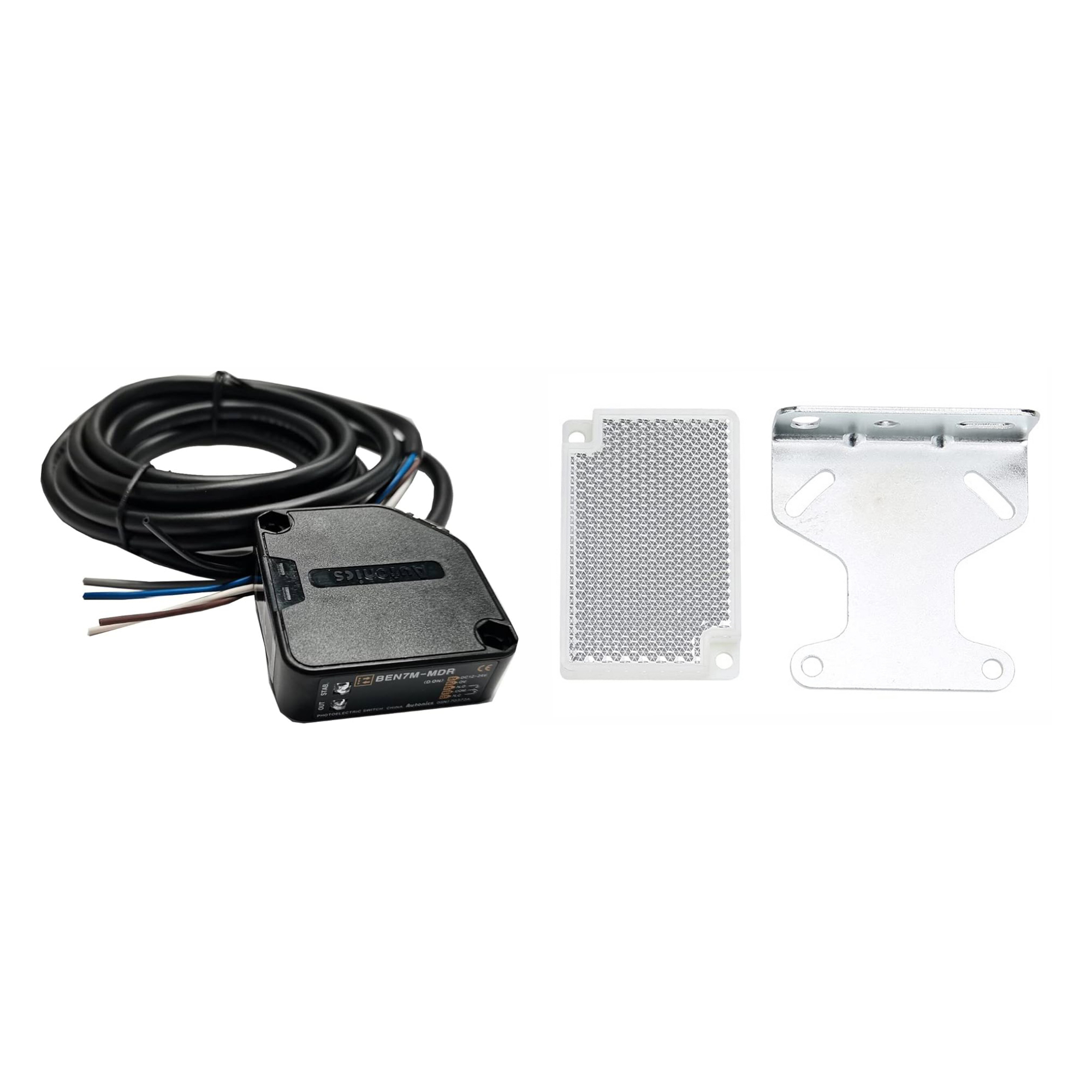 Reflektujuće fotoćelije, domet do 12m, radni napon 24Vac / 10V~36Vdc, relejni izlaz NO/NC, radna temperatura -25℃ ~ +60℃, IP65, dimenzije fotocelije 86x44x39mm, dimenzije reflektora 82×5,5mm. Svetlost izmedju fotoćelija i reflektora je polarizovana i fotoćelije su imune na direktne refleksije sa automobila koji imaju matalik boju, uz reflektor se isporucuje i antikondenzaciona osnova